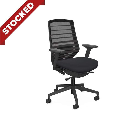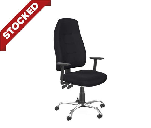 Positura Office Chair Swivel 3 Lever Chair, Chrome Base, Adjustable Step PU Arms with Sliding Tops